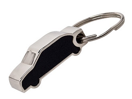 LLA015-SLlavero 3D en forma de auto, relleno de fomy color negro y acabados en cromo