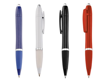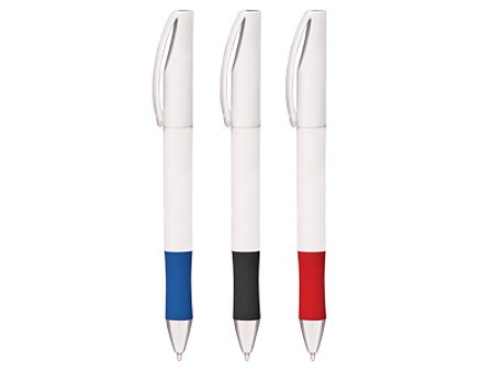 BOL123-SBolígrafo Blanc con clip, grip de color y trim cromado