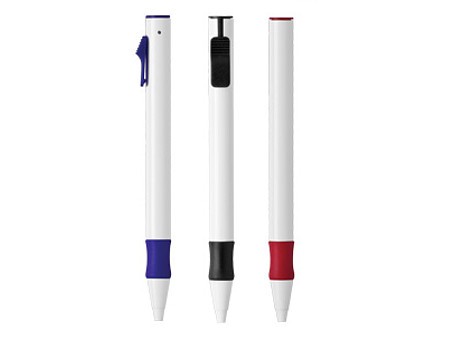 BOL119-SBolígrafo Blanco con clip, grip de color y trim cromado