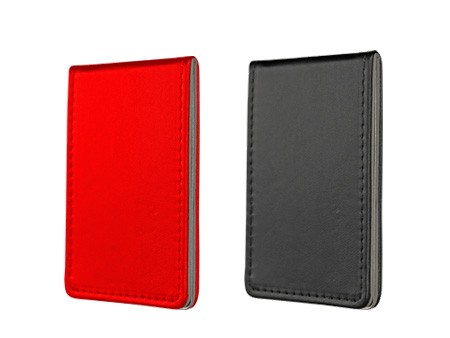 Espejo con cubierta de vinipiel color azul rectangular. Disponible en colores azul, rosa, rojo y negro.