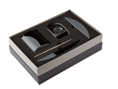 SET DE ESCRITORIO JACKSON (INCLUYE TARJETERO CON BOLÍGRAFO, PORTA PLUMAS, ABRECARTAS, RELOJ Y CAJA DE REGALO.)