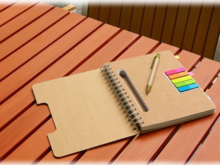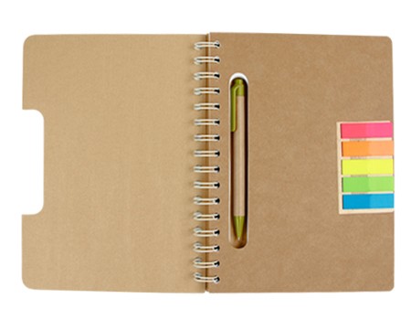 LIBRETA ECOLÓGICA JOLIET (100 HOJAS DE RAYA. INCLUYE NOTAS ADHERIBLES EN 5 COLORES Y BOLÍGRAFO ECOLÓGICO. ESPIRAL METÁLICO DOBLE.)