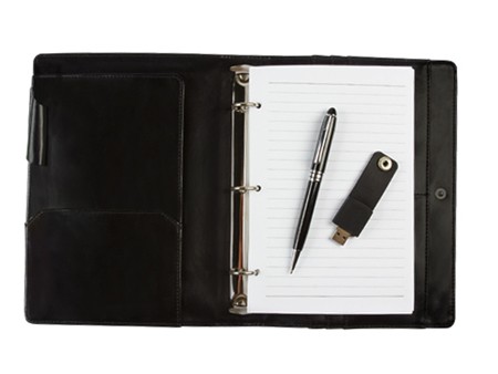 LIBRETA FARA (100 Hojas de raya tamaño esquela. Incluye bolígrafo metálico y broche USB desprendible de 4 GB. Compartimentos para tarjetas y documentos. Arillo de 1 pulgada. Incluye caja de regalo.)