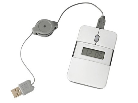 MOUSE TIME (Mouse con reloj, despertador, luz interna y fecha. Incluye cable retráctil (76 cm), baterías y caja individual.)