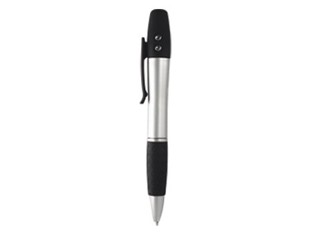 ES13021-EBolígrafo plástico marca PL, color plata con laser más led ultra