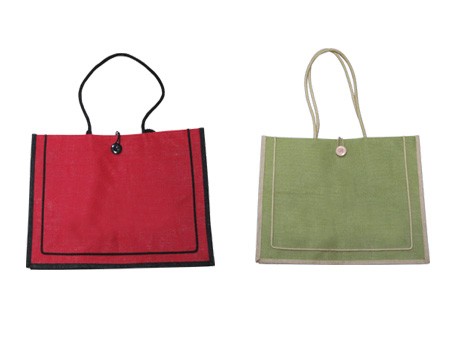 Bolsa fabricada en yute. Material ecologico. Disponible en azul, beige, rojo y verde.