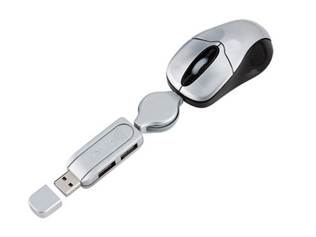MOUSE USB CON 2 PUERTOS Y CABLE RETRACTIL.