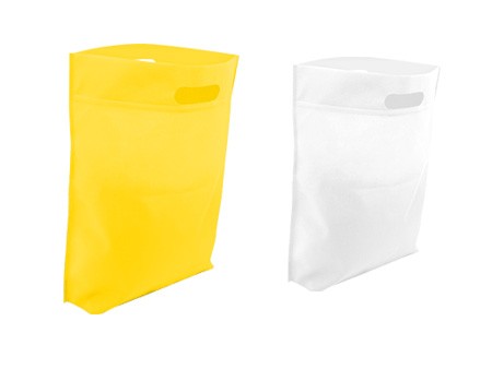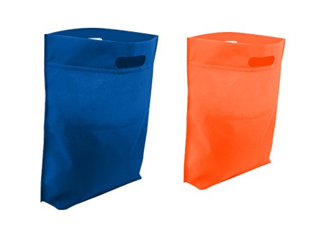 Bolsa fabricada en nonwoven con fuelle mide 39 x 44. Disponible en azul, amarillo, verde, naranja, rojo y negro.