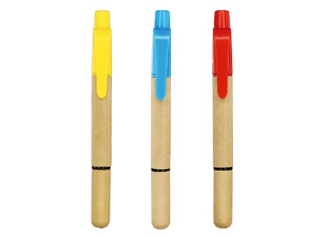 ES35009PL-EBolígrafo de cartón más marcatextos Eco, en colores amarillo, azul y rojo