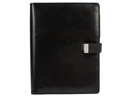 Diseñado en lona, color negro con compartimentos interiores para documentos e identificaciones y un util block de hojas tamaño carta.