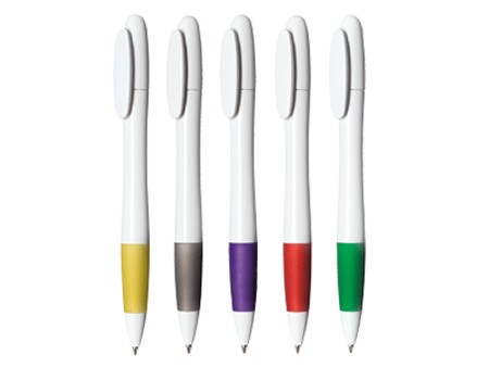 ES11037MX-EBolígrafo plástico marca Maxema, cuerpo color blanco con combinación de colores