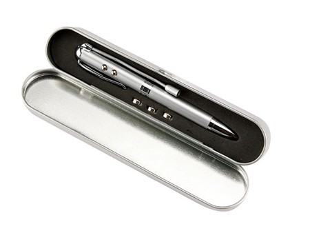 BOLÍGRAFO LÁSER LÁMPARA (MECANISMO TWIST. INCLUYE ESTUCHE METÁLICO Y BATERÍAS DE REPUESTO.)