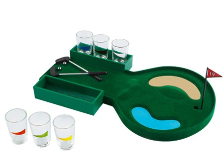 JM035-PJUEGO MINI GOLF (INCLUYE 6 VASOS DE CRISTAL, 2 BALINES, 2 PALOS DE GOLF Y BANDER