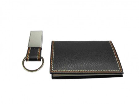 OF57001-ETARJETERO T.PIEL + LLAVERO MET DUO NEGRO