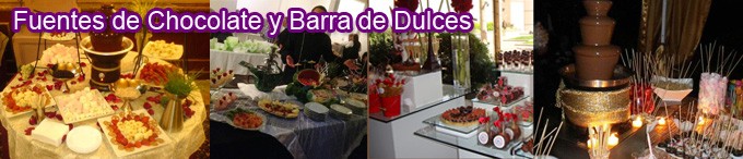 Contamos con Servicio de Comida, Bocadillos y Canapés, Fuentes de Chocolate, Barra de Coctelería y Barra de Dulces.