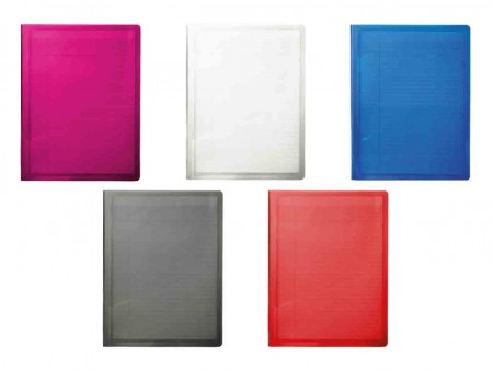 Carpeta de plastico con bolsillo de tarjeta interior y porta boligrafo y block de 30 hojas rayadas-.disponible Amarillo, Morado, Azul, Blanco, Naranja, Negro, Rojo, Rosa y Verde medidas 14x31.5 cm