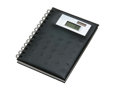 Calculadora solar de 8 dígitos portable en cuaderno tipo esquela con 70 hojas rayadas. Acabado de pasta en color sólido, contorno de display en color plata mate. Protege el planeta ahorrando energía. En colores azul y negro.